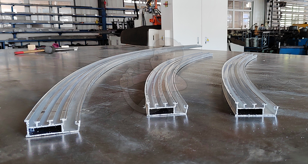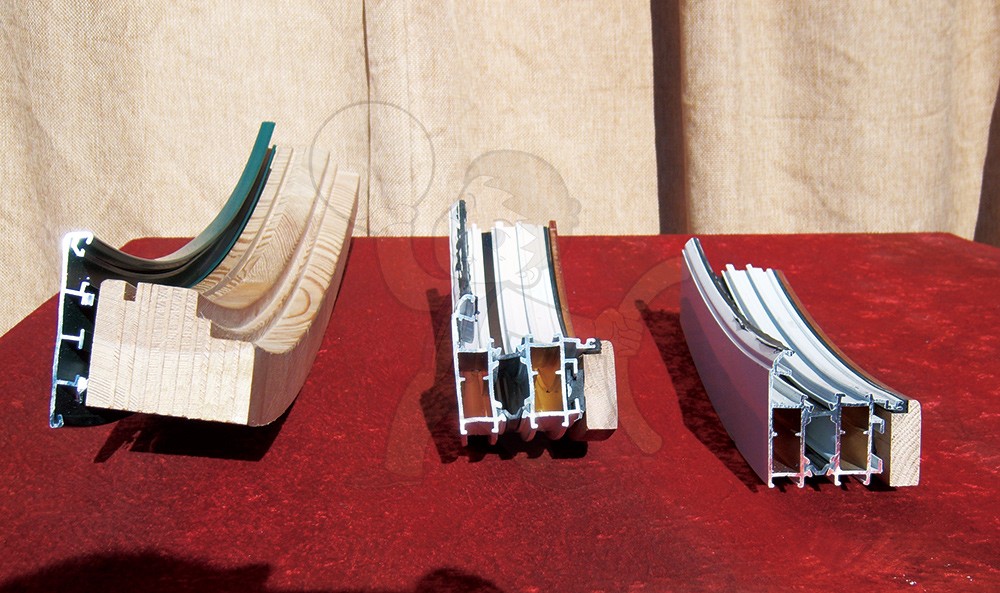 鋁包木型材是近幾年興起的一種門窗用鋁型材,加工出的門窗具有雙重裝飾效果,更具保溫、節(jié)能、抗風(fēng)沙的功能。但由于其厚度只有15mm,寬度則達(dá)到了86mm,表面布滿了溝槽,冷彎加工后極易變形、扭曲、斷裂。 北京盛達(dá)偉業(yè)型材拉彎廠經(jīng)過工裝改良,工藝改進(jìn),加工出來的鋁包木型材整體平整,表面光滑,最小彎弧半徑R=460mm。