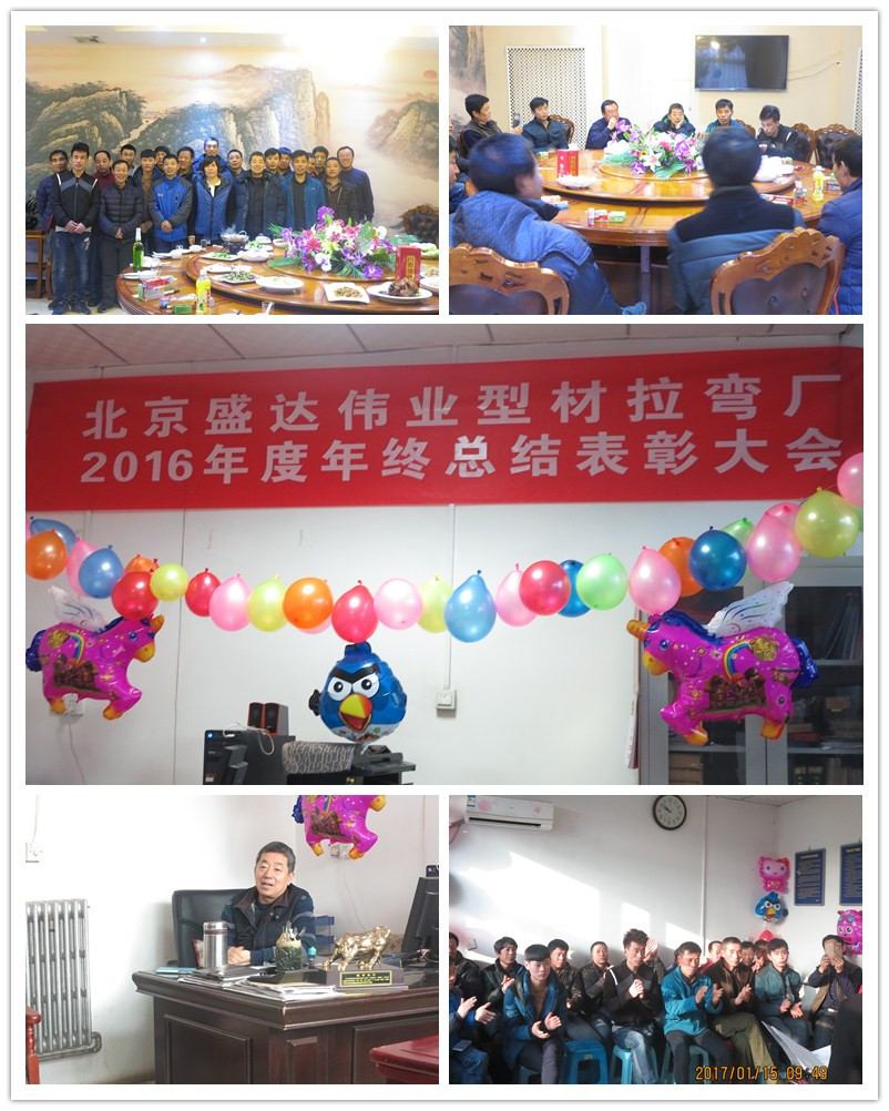 2016型材拉彎廠年終總結(jié)表彰聯(lián)歡會(huì)與2017年1月15日在北京盛達(dá)偉業(yè)型材拉彎廠隆重舉行,年終獎(jiǎng)是我廠為員工打造的私人定制薪酬,中國精細(xì)拉彎加工行業(yè)的領(lǐng)導(dǎo)者盛達(dá)偉業(yè)從每點(diǎn)滴做起!