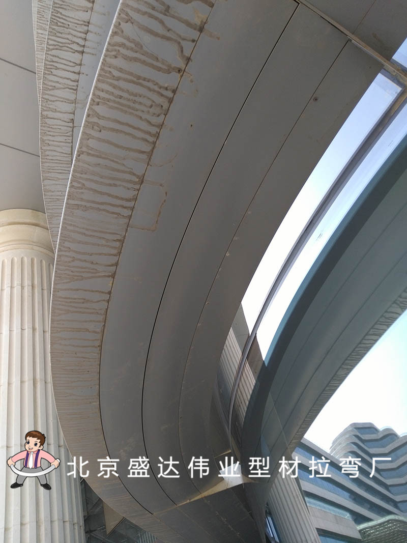 2、 北京盛達(dá)偉業(yè)型材拉彎廠的科研人員和技術(shù)工人經(jīng)過苦心鉆研,設(shè)計(jì)出了獨(dú)特的工裝夾具和成型模具,使得拉彎過程中型材的截面變形相當(dāng)細(xì)小,從而也保證了很小的尺寸變化,拉彎完成后很方便客戶的組裝加工,也使得拼接后的遮陽百葉接縫均勻,整齊美觀,提升了工程的外觀質(zhì)量。